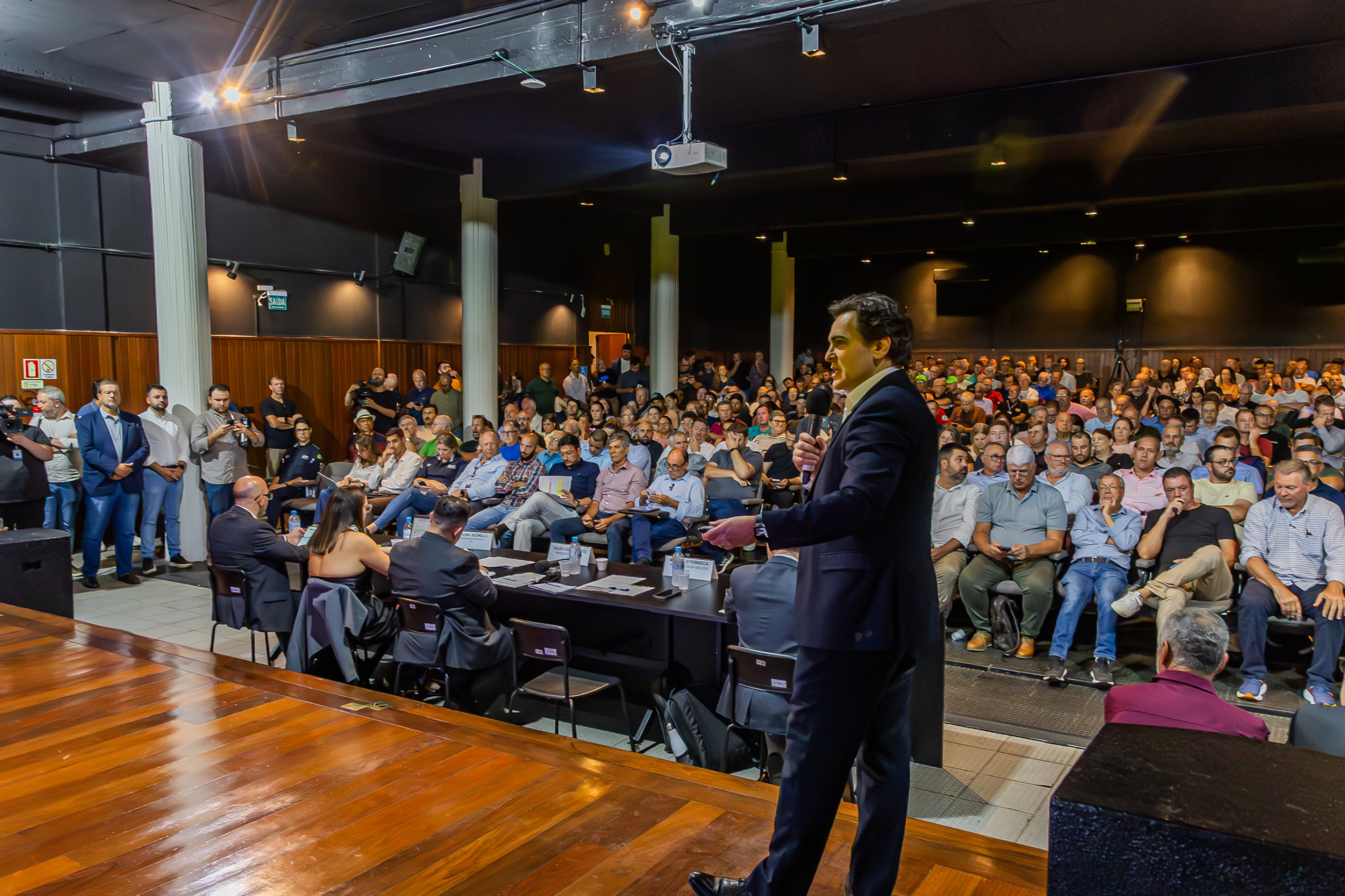 Público lotou o auditório da UCPel na tarde desta terça-feira (17), na audiência pública promovida pela ANTT para debater o novo modelo de concessão nas rodovias da região, denominado pela Agência "Rota Portuária do Sul" (Fotos: Volmer Perez/Secom)
