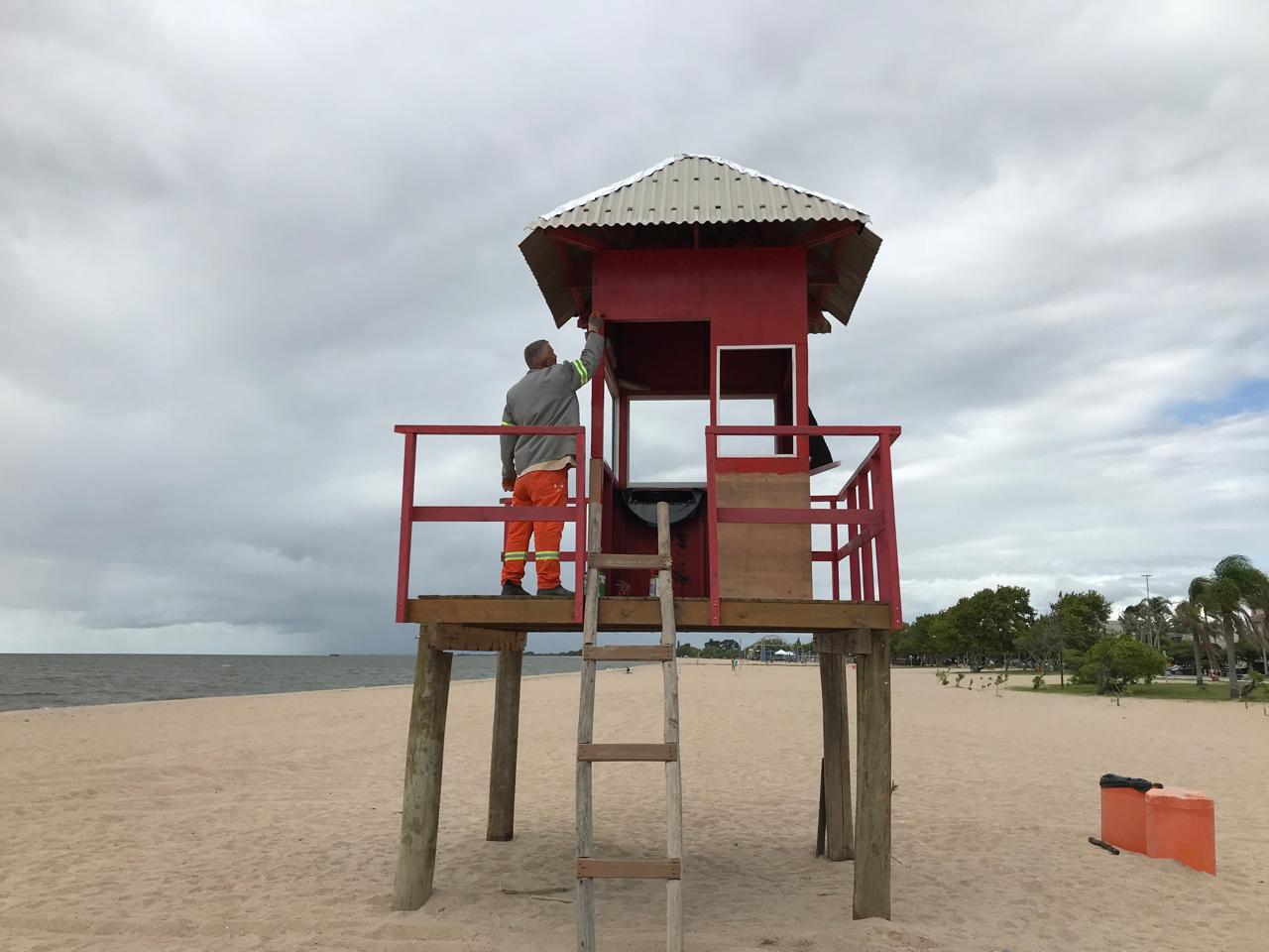 Prefeitura faz manutenção em guaritas de salva-vidas da praia